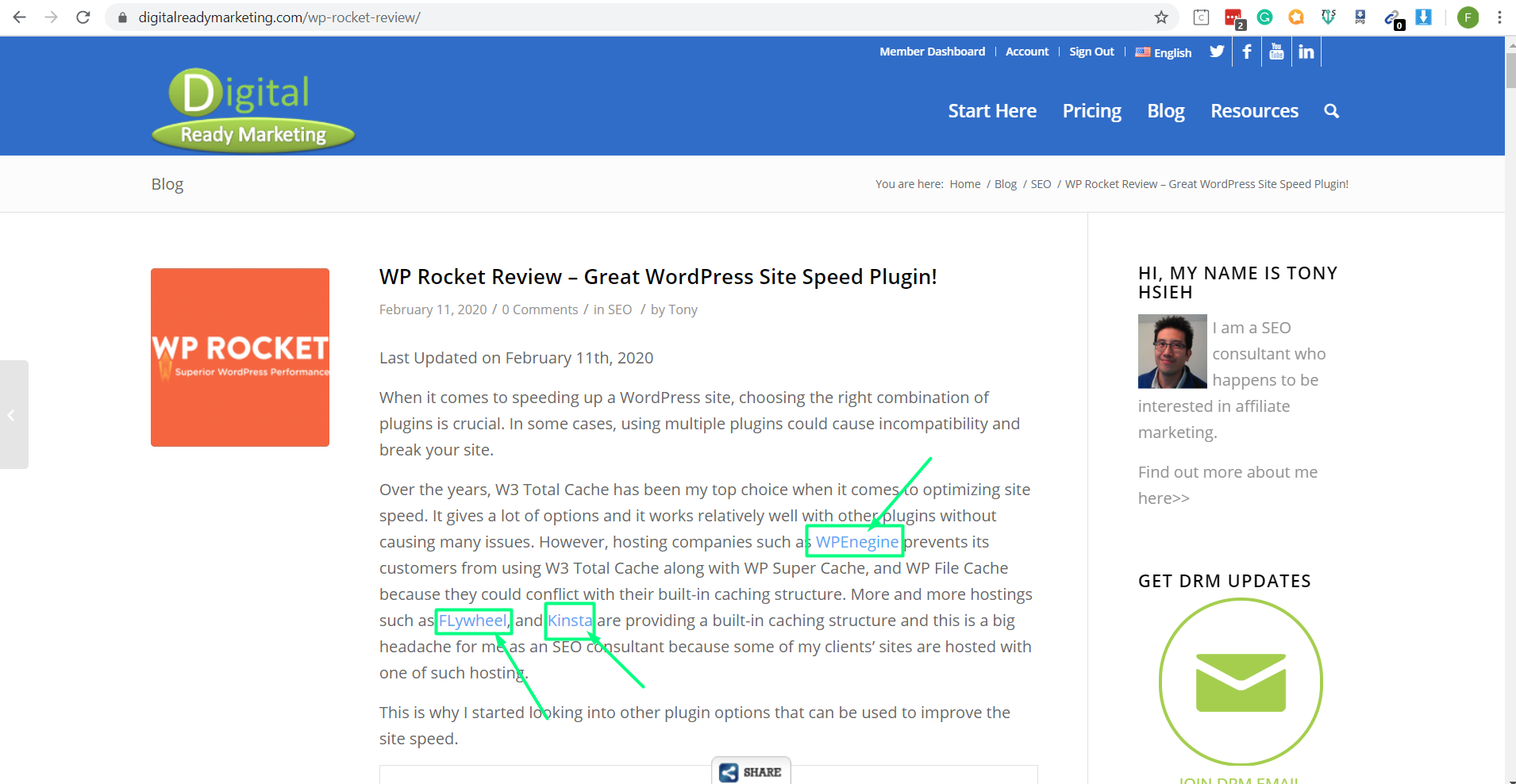 In my recent blog post “WP Rocket Review – Great WordPress Site Speed Plugin!“, I’ve linked a couple of other websites. See the image below.