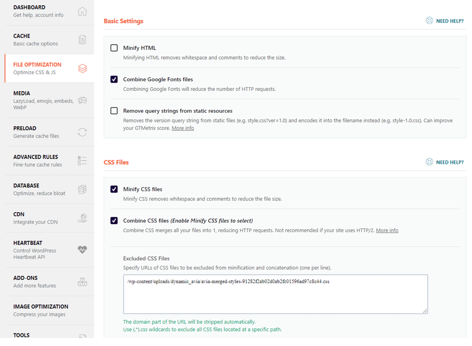 File Optimization is the section where you can adjust your setting to optimize to minimize the size of your HTML, CSS and JS files.