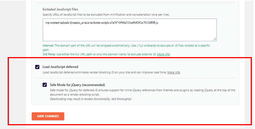Excluded Inline JavaScript – excluded any JavaScript files you do not want to be optimized.