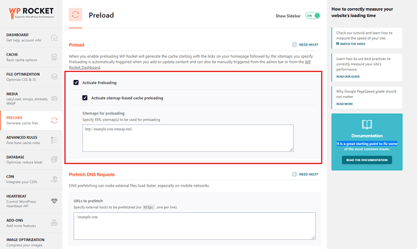 - Activate sitemap-based cache preloading – WP Rocket will preload detected pages/posts listed in the sitemap.