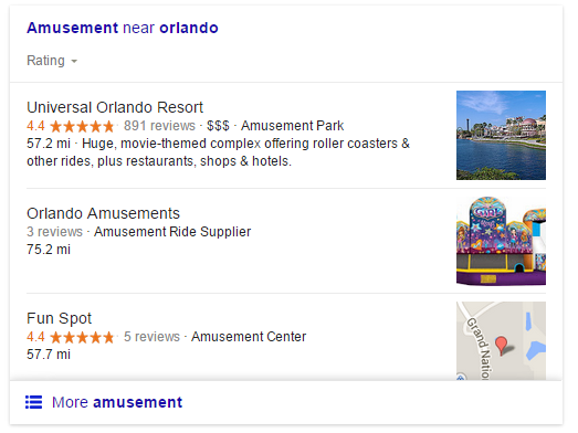 One of the most familiar local results that is blended with organic results. The typical pack are 3 or 7 results and can appear on any position within the organic results. There was a report that post Pigeon algorithm update, appearance of these packs have decreased noticeably.