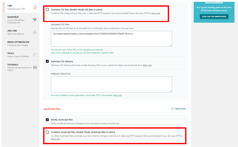 DRM Pro Tip: Use a site speed test tool to identify all the CSS and JS files on your site first. So you know the file names in case you need to exclude some files when minifying or combining files give you an issue.