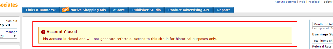 I logged into my Amazon Associates account and sure enough, there it was, a large “Account Closed” sign.